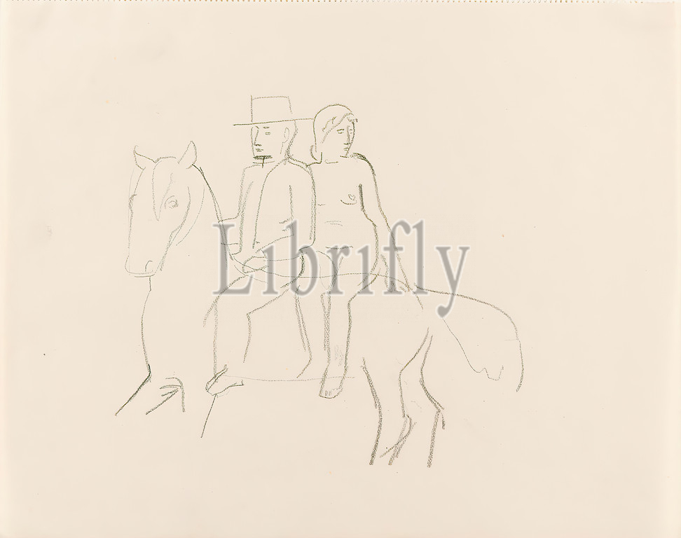 Gustav Heinrich Wolff, Couple Riding, Horse, pencil, drawing paper, drawing, pencil, drawing paper, drawing, graphics, sketches, horse, rider, man, hat, female nude, man, animal, classical modernism, Couple Riding, Horse, sketchbook 1926-27