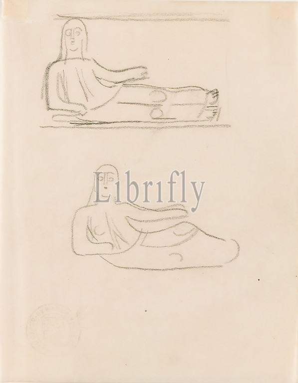 Gustav Heinrich Wolff, design, Die Genesende, Liegende, pencil, parchment, drawing, pencil, parchment, drawing, graphics, sketches, design drawings, lying figure, Classic Modernism, single sheet, sketchbook February-March 1924, design drawings, marble relief Die Genesende, 48