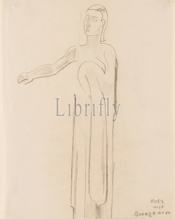 Gustav Heinrich Wolff, design, figure, outstretched arm, drawing paper, drawing charcoal, drawing, charcoal, drawing paper, Holz mit Bronzearm, Skizzen, Entwurfszeichnung, stehende Figur, Skulptur, Plastik, Bildhauerkunst, Klassische Moderne, design, sculpture, figure, outstretched arm, sketchbook 1926