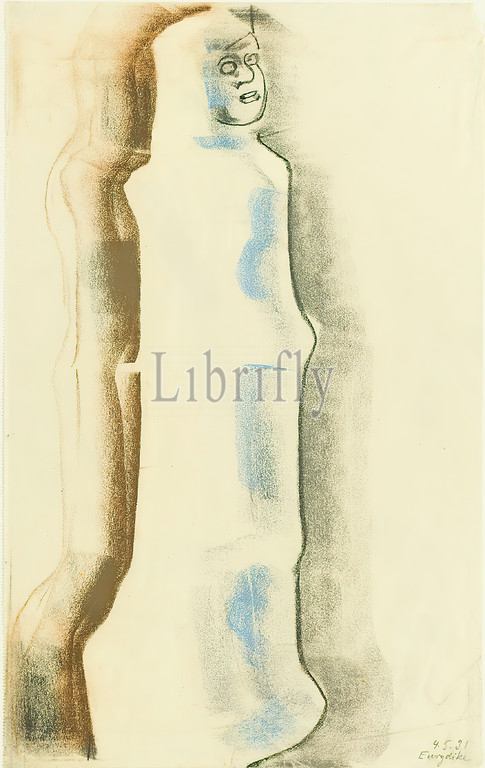 Gustav Heinrich Wolff, Eurydice, pastel chalk, drawing, pastel on drawing paper, total: height: 41 cm; width: 25,6 cm, inscribed and dated: recto lower right: with pencil: 4.5. 31 Eurydice, Drawing, graphic, Sketches, Free graphic, standing figure, Orpheus and Eurydice, Classical Modernism, colored sketch of a standing figure in half profile to the right, inscribed and dated: recto lower right: with pencil: 4.5. Eurydice, drawing, sketches, free graphic, standing figure, Orpheus and Eurydice, Classical Modernism, colored sketch of a standing figure in half profile to the right, inscribed and dated: recto lower right: with pencil: 4.5. single sheet 1931. In classical Greek mythology, Eurydice was a nymph and wife of Orpheus.
