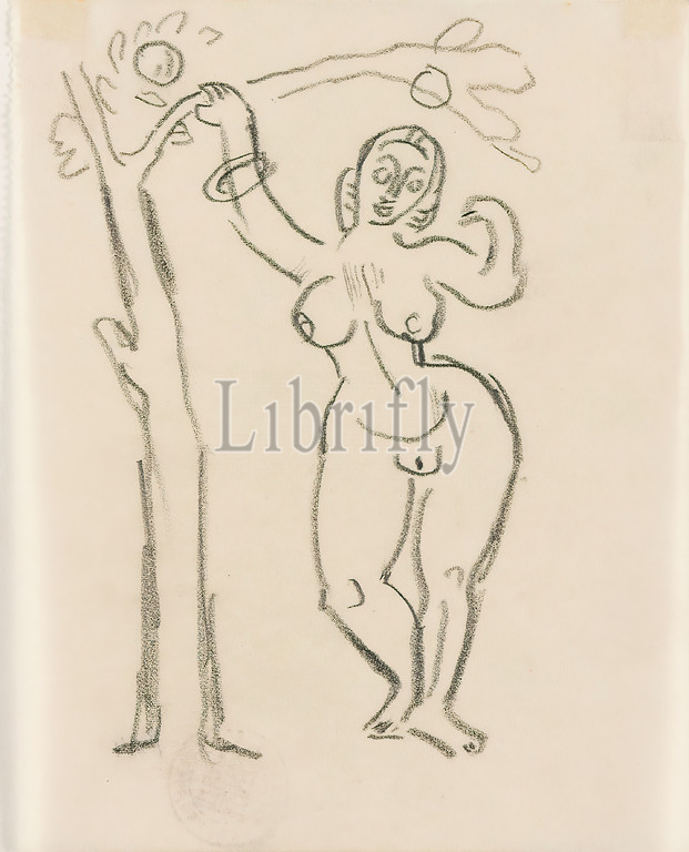 Gustav Heinrich Wolff, Female Nude, Eve, pencil, parchment, pencil, parchment, graphics, Sketches, Eve, Standing female nude, apple, temptation, fall, sin, Classic Modernism, Eve, single sheet, sketchbook April-, 1924