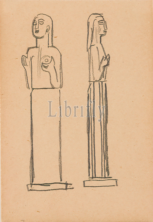 Gustav Heinrich Wolff, Female Semi-nude, pedestal, design, sculpture, pencil, paper, drawing, pencil, brownish paper, design drawings, drawing, graphics, standing figure, sculpture, sculpture, sculptural art, Classic Modernism, two design sketches, sketchbook February 1926