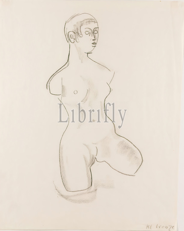 Gustav Heinrich Wolff, Female Torso, Small Bronze, drawing paper, drawing charcoal, drawing, charcoal, drawing paper, inscribed, recto bottom right, kl bronze, drawing, graphics, sketches, design drawings, female nude, upper part, body, torso, sculpture, plastic, sculpture art, classical modernism, sketch, female torso, sketchbook, 1928