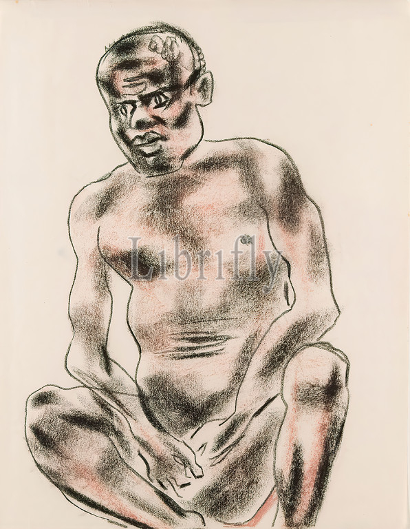 Gustav Heinrich Wolff, Hockender, drawing paper, drawing charcoal, pastel chalk, drawing, pastel, charcoal, drawing paper, unmarked, sketches, free graphic, Drawing, graphic, full-length portrait, squatting, stooped figure, African, Classic Modernism, single sheet, Bl, November 1929