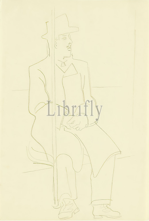 Gustav Heinrich Wolff, man, bench, streetcar, drawing paper, drawing charcoal, drawing, charcoal, drawing paper, unmarked, sketches, drawing, graphics, seated figure, man, streetcar, urban life, city dwellers, traffic, transport, cylinder, classic modernism, single sheet, sketchbook, 1920s