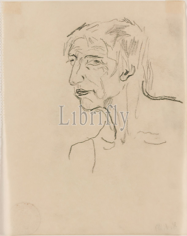 Gustav Heinrich Wolff, portrait study, pencil, vellum, drawing, pencil, vellum, verso lower left, someone else?, dated, pencil, graphics, Sketches, Old Woman, Portrait, Classical Modernism, Portrait Study, Elderly Person, Half-Profile, Left, Sketchbook 1932-34