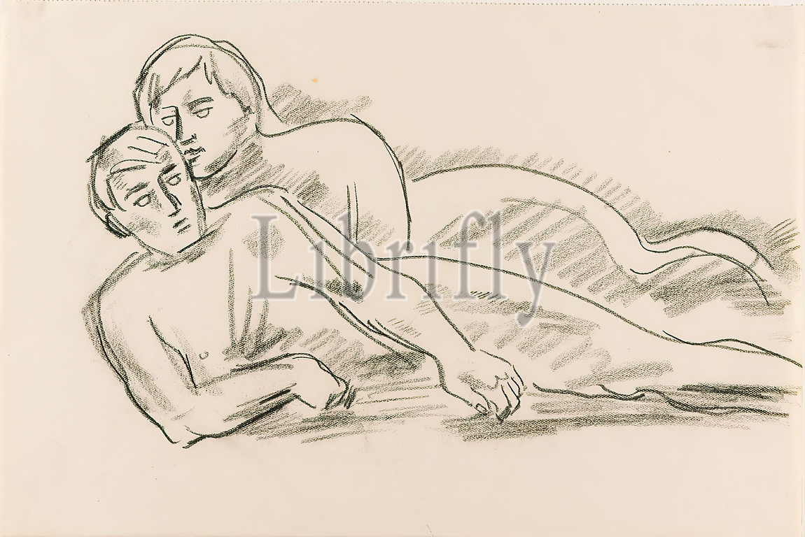 Gustav Heinrich Wolff, Reclining couple, drawing paper, drawing charcoal, drawing, charcoal, drawing paper, drawing, graphics, sketches, lovers, lovers, lying figure, relationships, sexes, classical modernism, lying, sketchbook 1927
