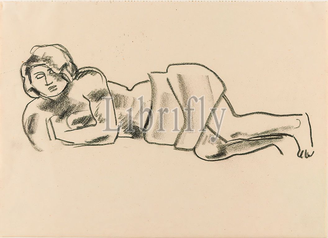 Gustav Heinrich Wolff, Reclining, drawing paper, drawing charcoal, drawing, charcoal, thin drawing paper, drawing, graphics, sketches, lying figure, woman, lying female nude, Classic Modernism, sketch, lying female nude, sketchbook Summer 1927