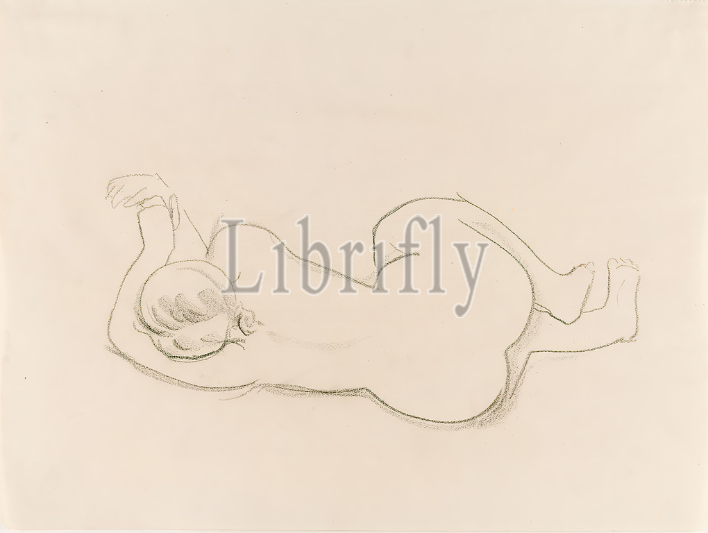 Gustav Heinrich Wolff, Reclining Nude, Back, drawing paper, drawing charcoal, drawing, charcoal, drawing paper, drawing, graphics, sketches, female nude, female nude, back, lying female nude, lying figure, Classic Modernism, Reclining Female Nude, Back, sketchbook 1926