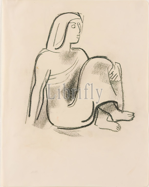 Gustav Heinrich Wolff, Sitting, Drawing charcoal, paper, drawing, charcoal, paper, graphics, sketches, sitting figure, Classic Modernism, Sitting, long robes, half profile, right, sketchbook 1925-1926