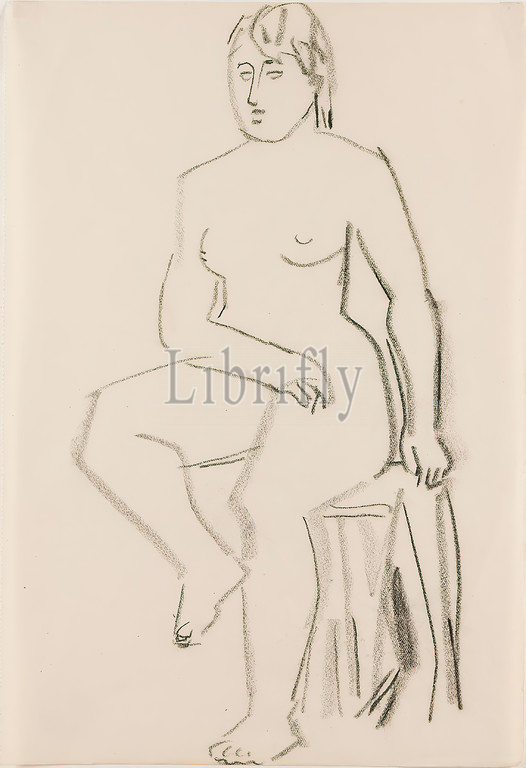 Gustav Heinrich Wolff, Sitting female nude, drawing paper, drawing charcoal, drawing, charcoal, drawing paper, drawing, graphics, sketches, sitting figure, sitting female nude, female nude, Classic Modernism