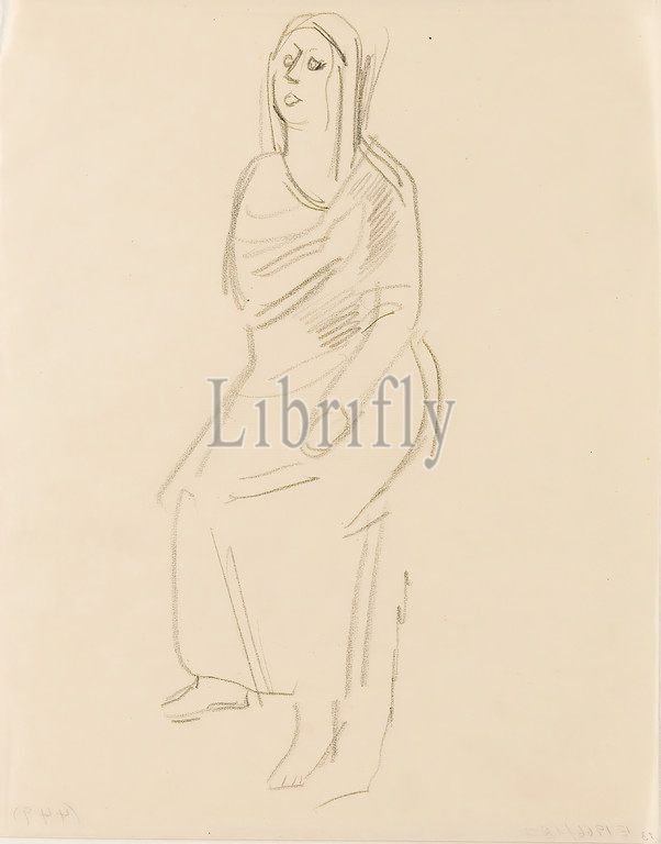 Gustav Heinrich Wolff, Sitting figure, robe, II, pencil, parchment, drawing, pencil, parchment, unmarked, sketches, drawing, graphics, sitting figure, Classic Modernism, single sheet, Bl, December 1924, partly created, Wolff's stay, Hamburg
