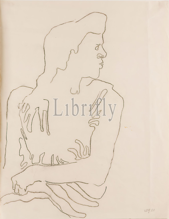 Gustav Heinrich Wolff, Sitting with head in profile, drawing paper, drawing charcoal, drawing, charcoal on drawing paper, total: height: 33 cm; width: 25,7 cm, dated: recto u.re. : with pencil: 28930, drawing, graphics, sketches, design drawings, sitting figure, woman, classical modernism, sketch of a woman looking to the right, bust, head in profile to the right; from the sketchbook 1930. Cf. Holthusen (1964) woodcut no. 88 Schwangere, 1930 (hair and design there very similar).