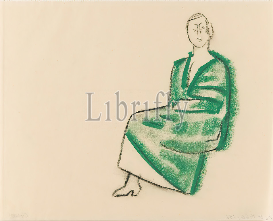 Gustav Heinrich Wolff, Sitting, II, pastel chalk, drawing charcoal, parchment, drawing, charcoal, pastel, parchment, unmarked, sketches, drawing, graphics, sitting figure, woman, green, jacket, coat, cape, cape, Classic Modernism, single sheet, Bl, December 1924, partly created, Wolff's stay, Hamburg