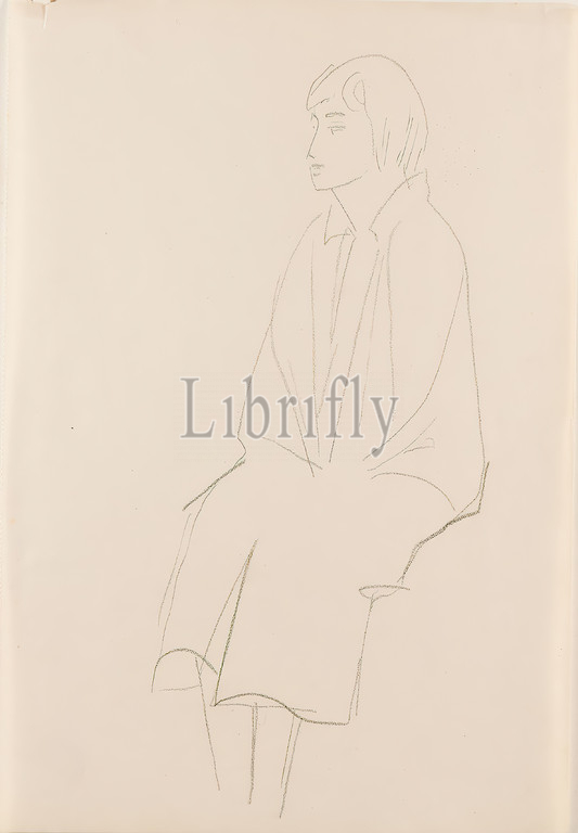 Gustav Heinrich Wolff, Sitting woman in a coat, pencil, drawing paper, drawing, pencil on drawing paper, total: height: 29,7 cm; width: 20,3 cm, drawing, graphics, sketches, sitting figure, woman, classical modernism, sitting woman with coat in half profile, from the sketchbook early 1928.