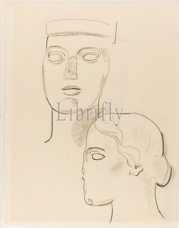 Gustav Heinrich Wolff, sketch, bust, nose cut off, drawing paper, drawing charcoal, drawing, charcoal, drawing paper, incl, perforated margin, unmarked, sketches, drawing, graphics, head, face, classical-antique history, sculpture, plastic, sculpture art, history, Venus, Aphrodite, classical modernism, study sheet, two female antique sculpture heads, Single sheet, sheet 6, sketchbook October, November 1929