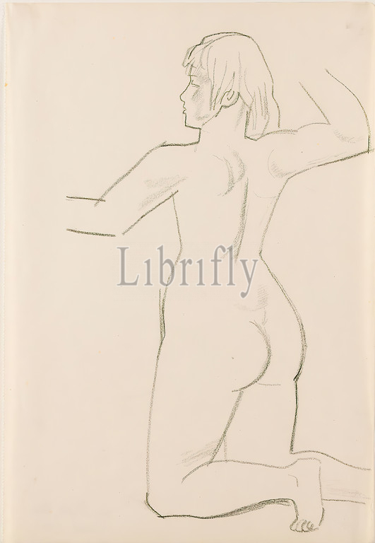 Gustav Heinrich Wolff, sketch, kneeling female nude, drawing paper, drawing charcoal, drawing, charcoal, drawing paper, inscribed, verso, right, someone else, pencil, sheet loose, sitting woman, drawing, graphics, sketches, kneeling figure, female nude, female nude, back, classical modernism, kneeling female nude, back view, sketchbook, 1928