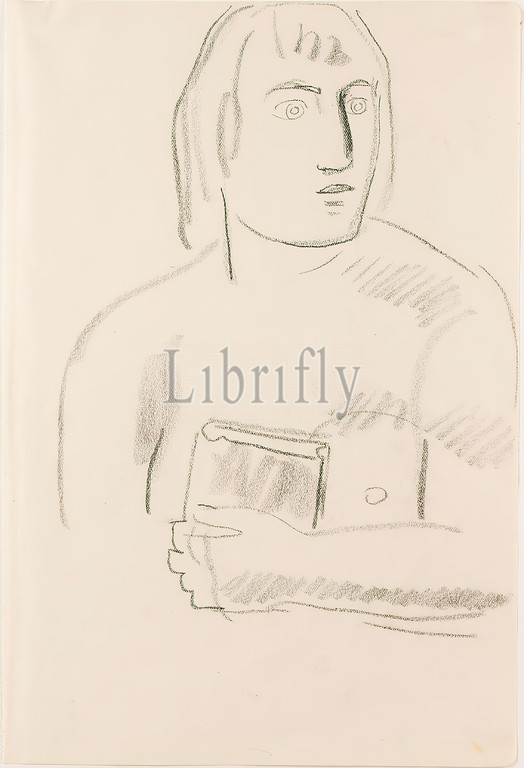 Gustav Heinrich Wolff, sketch, nude half figure, book, drawing paper, drawing charcoal, drawing, charcoal, drawing paper, drawing, graphics, sketches, human body, figure, nude, book, Classic Modernism, male, ?, half figure, head, half profile, right, sketchbook 1928