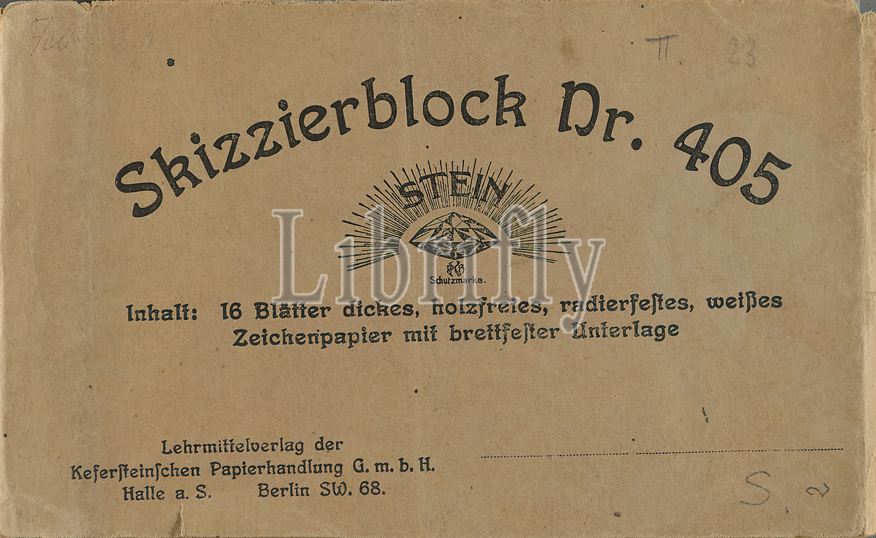 Gustav Heinrich Wolff, sketch pad 1923, drawing paper, red chalk, drawing, red chalk, drawing paper, cover recto top right, pencil, someone else?, dated, drawing, graphics, sketches, design drawings, drawing art, standing figure, sculpture, plastic, sculpture art, classical modernism, sketch pad no, standing figure, profile, right, plinth, angled right arm