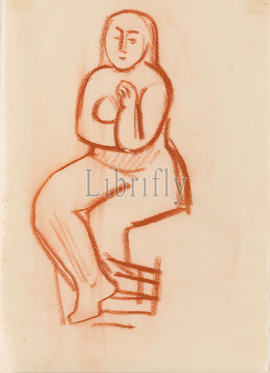 Gustav Heinrich Wolff, Sketch, Sitting Femme au Collier, red chalk, parchment, drawing, red chalk, parchment, drawing, graphics, sketches, design drawings, sitting figure, sitting female nude, Classic Modernism, sketch, sitting female nude, sketch, sculpture Femme au Collier, Sitzende mit Kette, 52