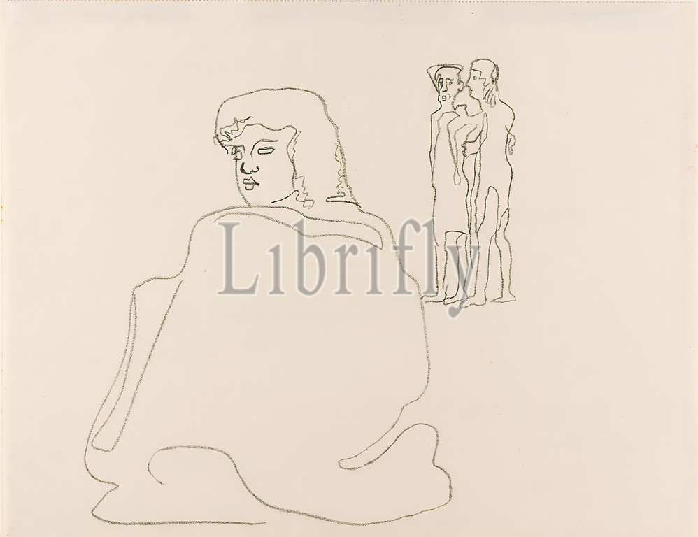 Gustav Heinrich Wolff, sketch, three figures, drawing paper, drawing charcoal, drawing, charcoal, drawing paper, unmarked, sketches, drawing, graphics, woman, sitting figure, standing figure, classical modernism, single sheet, Bl, November 1929