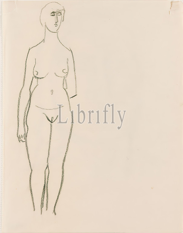 Gustav Heinrich Wolff, Standing Female Nude, charcoal, paper, drawing, charcoal, paper, graphics, sketches, female nude, standing female nude, classical modernism, female nude, standing, left arm crossed, back, sketchbook 1925-26