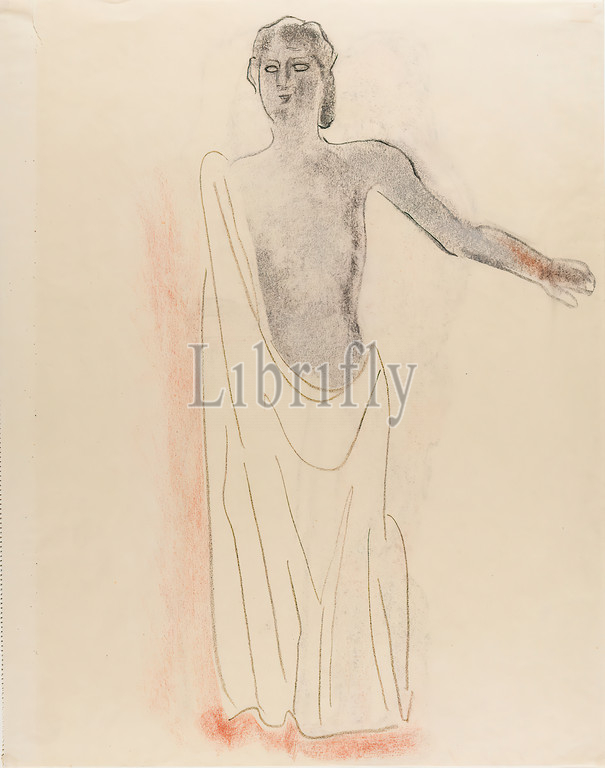 Gustav Heinrich Wolff, Standing female nude, cloth, drawing paper, pastel chalk, red chalk, drawing charcoal, drawing, charcoal, red chalk, pastel, drawing paper, drawing, graphics, Sketches, Free Graphics, drawing, graphics, Standing figure, arm positions, gestures, standing female nude, Classic Modernism, Unmarked, undated single sheet, sketchbook