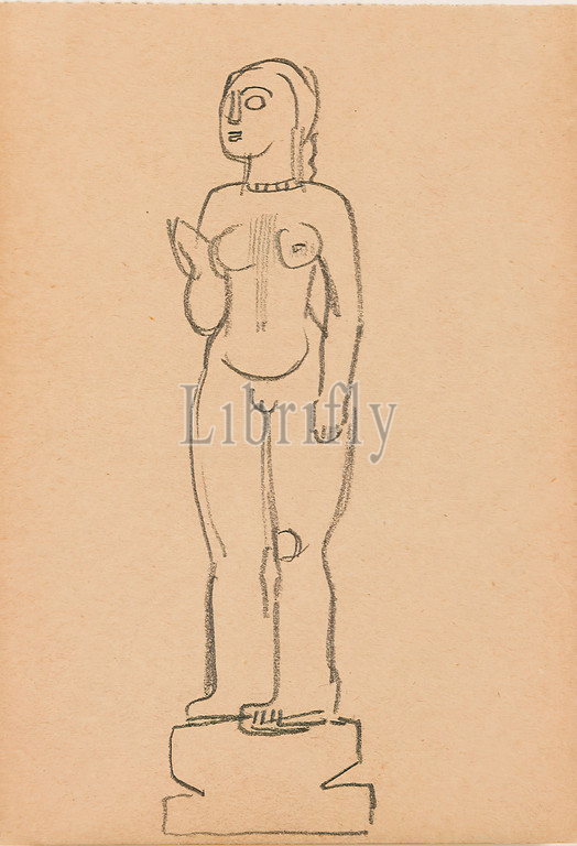 Gustav Heinrich Wolff, Standing Female Nude, Pedestal, pencil, paper, drawing, pencil, brownish paper, design drawings, drawing, graphics, standing figure, standing female nude, sculpture, plastic, sculpture, Classic Modernism, Standing Female Nude, Pedestal, raised right forearm, February 1926 sketchbook