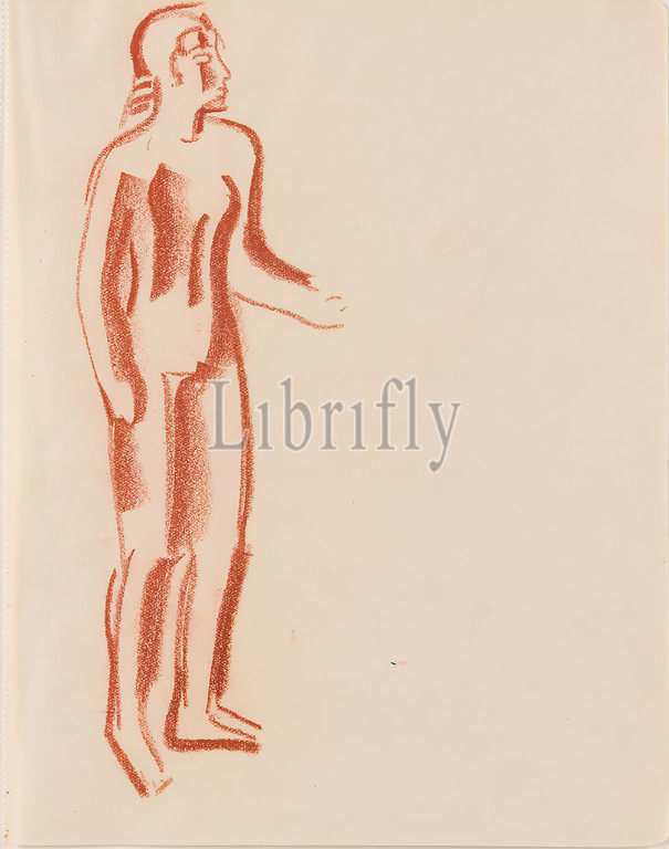 Gustav Heinrich Wolff, Standing female nude, red chalk, paper, drawing, red chalk, paper, graphics, sketches, standing figure, human body, figure, nude, Classic Modernism, Standing female nude, sketchbook 1925-26