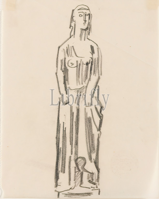 Gustav Heinrich Wolff, Standing, pedestal, long translucent robe, pencil, parchment, drawing, pencil, parchment, Drawing, graphic, sketches, standing figure, Classical Modernism, sketchbook October, November 1924