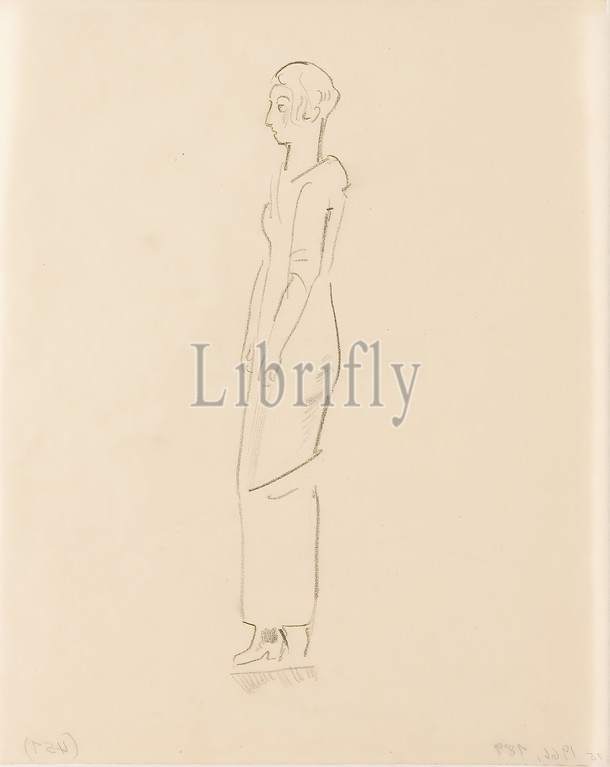 Gustav Heinrich Wolff, standing, profile, pencil, parchment, drawing, pencil, parchment, unmarked, sketches, drawing, graphics, standing figure, profile, side view, Classic Modernism, single sheet, pg, December 1924, partly created, Wolff's stay, Hamburg
