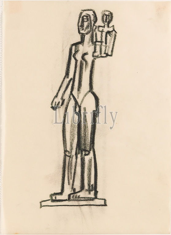 Gustav Heinrich Wolff, Standing Woman, Child, Half Profile, Young Mother, parchment, charcoal, drawing, drawing, charcoal, parchment, unmarked, sketches, drawing, graphics, design drawings, mother, child, standing female nude, sculpture, plastic, sculpture art, Classic Modernism, single sheet, sketchbook, copper pendant Young Mother, Holthusen sculpture no, 47
