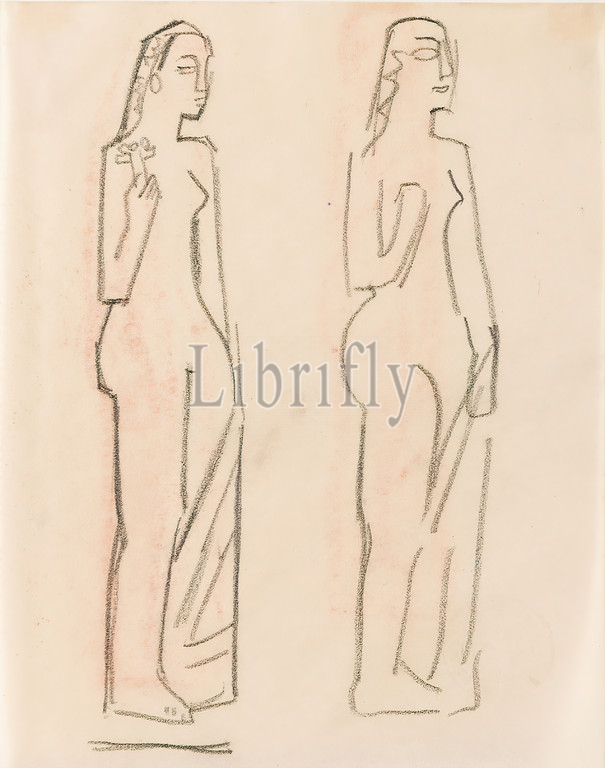 Gustav Heinrich Wolff, Two sketches, standing figure, cloth, pencil, parchment, drawing, pencil, parchment, drawing, graphic, sketches, standing figure, Classic Modernism, Two sketches, standing female figure, nude, drawn side, side, sketchbook February-March 1924