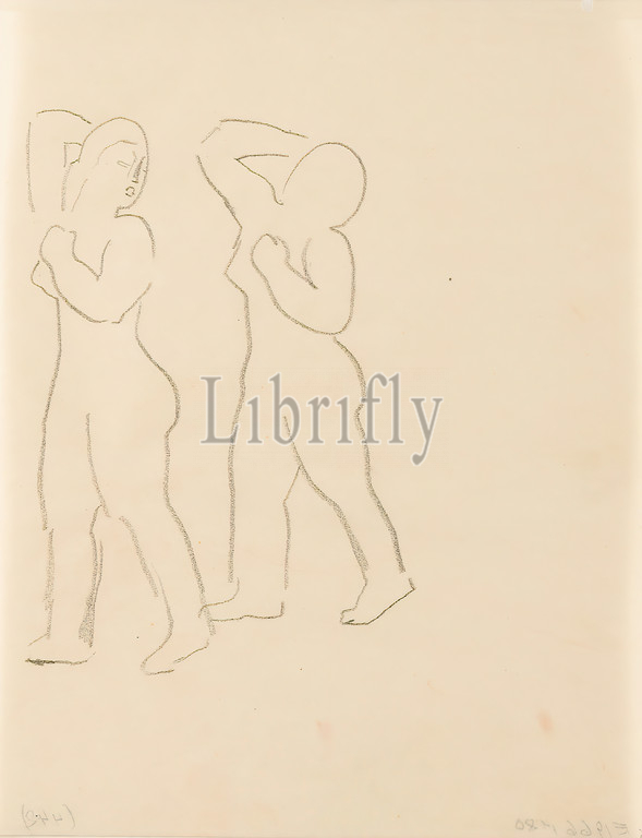 Gustav Heinrich Wolff, Two studies, callipyge, II, pencil, parchment, drawing, pencil, parchment, unmarked, sketches, drawing, graphics, History, Venus, Aphrodite, Classic Modernism, study sheet, standing woman, raised right arm, holding, left arm, front, body, head, half profile, right, looking back, shoulder, Aphrodite Kallipygos, Venus Kallipygos, Single sheet, Bl, December 1924, partly created, Wolff's stay, Hamburg, Cf, Holthusen, 1924