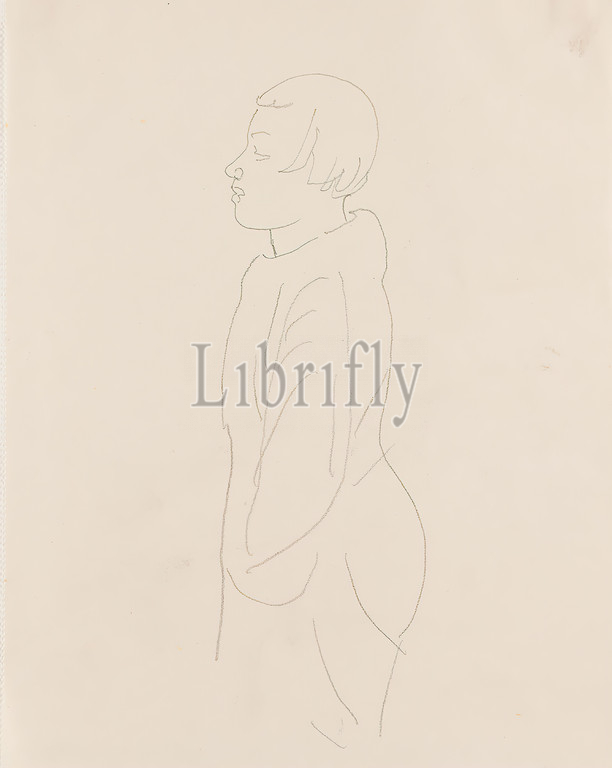 Gustav Heinrich Wolff, Woman in coat in profile, Pencil, Drawing paper, Drawing, Pencil on drawing paper, Total: Height: 22 cm; Width: 17,4 cm, drawing, graphics, Sketches, Woman, Profile (side view), Classic Modernism, From the Sketchbook 1926.