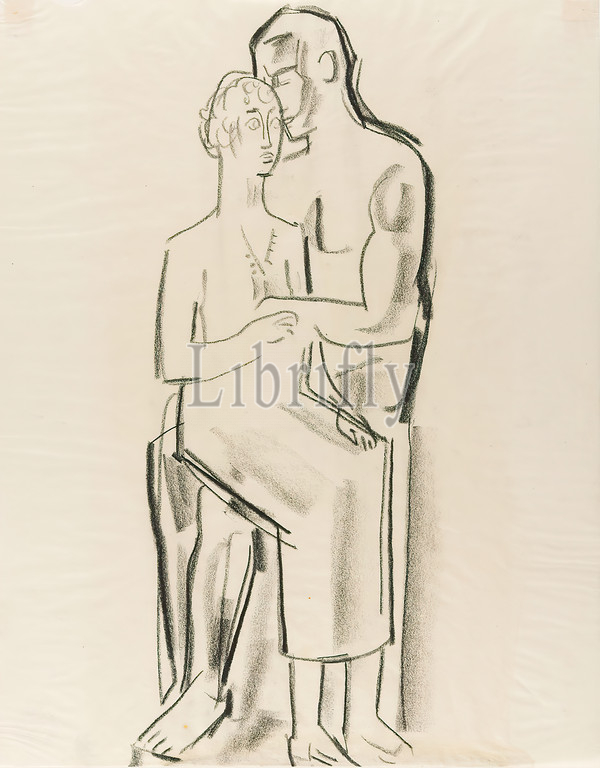 Gustav Heinrich Wolff, Woman, lap, man, parchment, drawing charcoal, drawing, charcoal, parchment, drawing, graphics, seated figure, male nude, woman, relationships, sexes, Classic Modernism, Single sheet, sketchbook 1925-26, ?