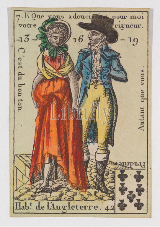 Hab.t de l'Angleterre, Playing Cards, Quartets, Costumes des Peuples Étrangers, 1700–1799, Etching, hand coloring, watercolor, 3 3/16, 2 1/16, 8.1, 5.3 cm, Prints, Anonymous, French, 18th century