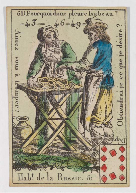 Hab.t de la Russie, Playing Cards, Quartets, Costumes des Peuples Étrangers, 1700–1799, Etching, hand coloring, watercolor, 3 3/16, 2 1/16, 8.1, 5.3 cm, Prints, Anonymous, French, 18th century