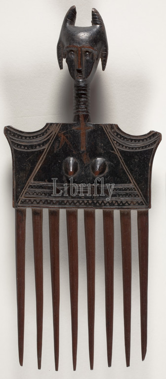 hair comb, woman, Asante people, 1900-1940, wood, 10-3/8 x 4-1/2 x 1-3/8, African Art