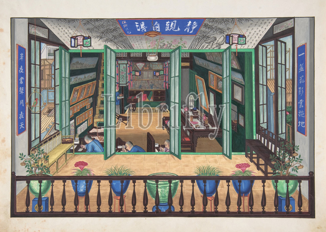 Hall, Quiet Study, 19th century, Watercolor, Drawings, Anonymous, Chinese, Canton