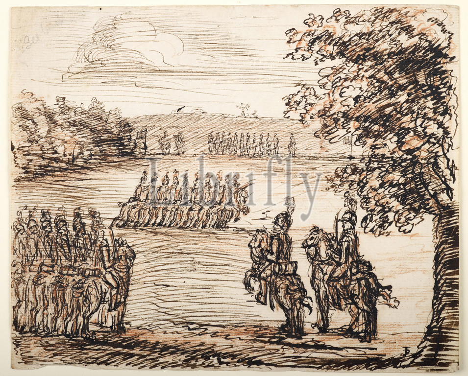 Handsworth Troop of Horse Drilling From album of John Phillp drawings and watercolours of Handsworth and Soho, Birmingham., Drawing, Ink, Topographical Views, Sketch, Animal, Horse, Birmingham history, Military