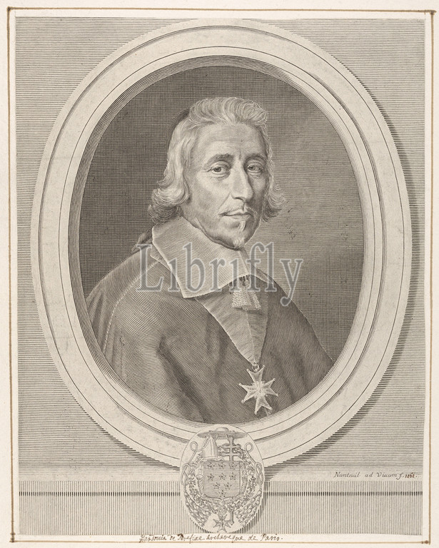 Hardouin de Beaumont Péréfixe, ca, 1662, Engraving, fourth state, four, Petitjean & Wickert, sheet, 12 1/2 x 9 3/4, 31.8 24.8 cm, Prints, Robert Nanteuil, French, Reims, 1623–1678, Paris