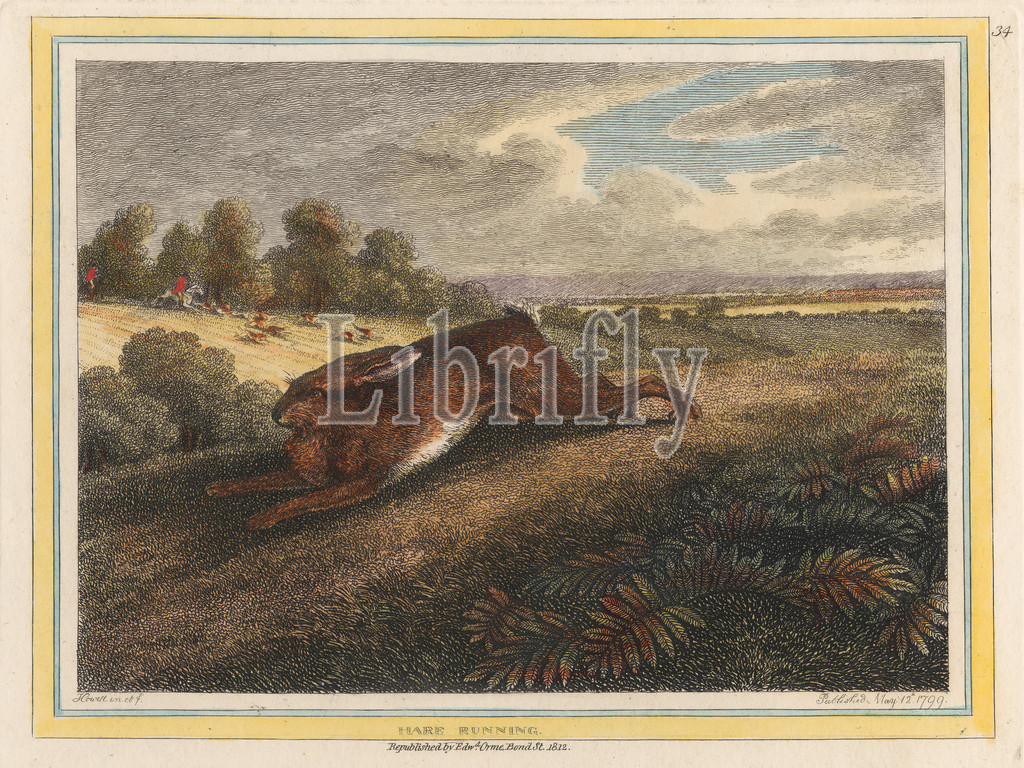 Hare Running, Print made by Samuel Howitt, 1756–1822, British, Published by Edward Orme, 1775–1848, British, 1812, Etching with hand coloring in watercolor on medium, slightly textured, cream wove paper