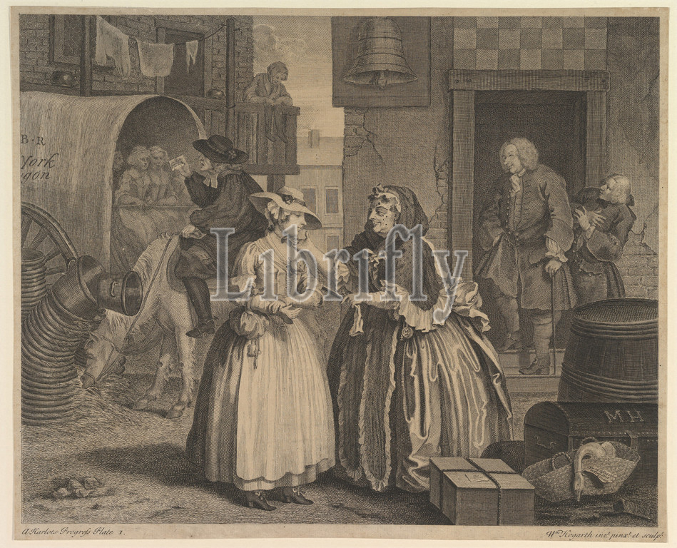 A Harlot's Progress, Plate 1, before April 1732, Etching and engraving; first state of four, sheet: 12 5/16 x 15 1/8 in. (31.3 x 38.4 cm), Prints, William Hogarth (British, London 1697–1764 London)