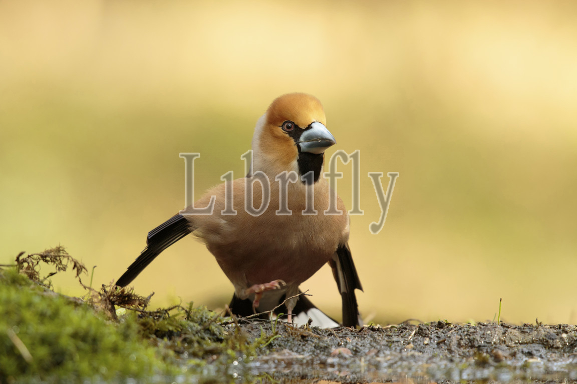 Hawfinch doing a mating ritual, Coccothraustes coccothraustes, Netherlands