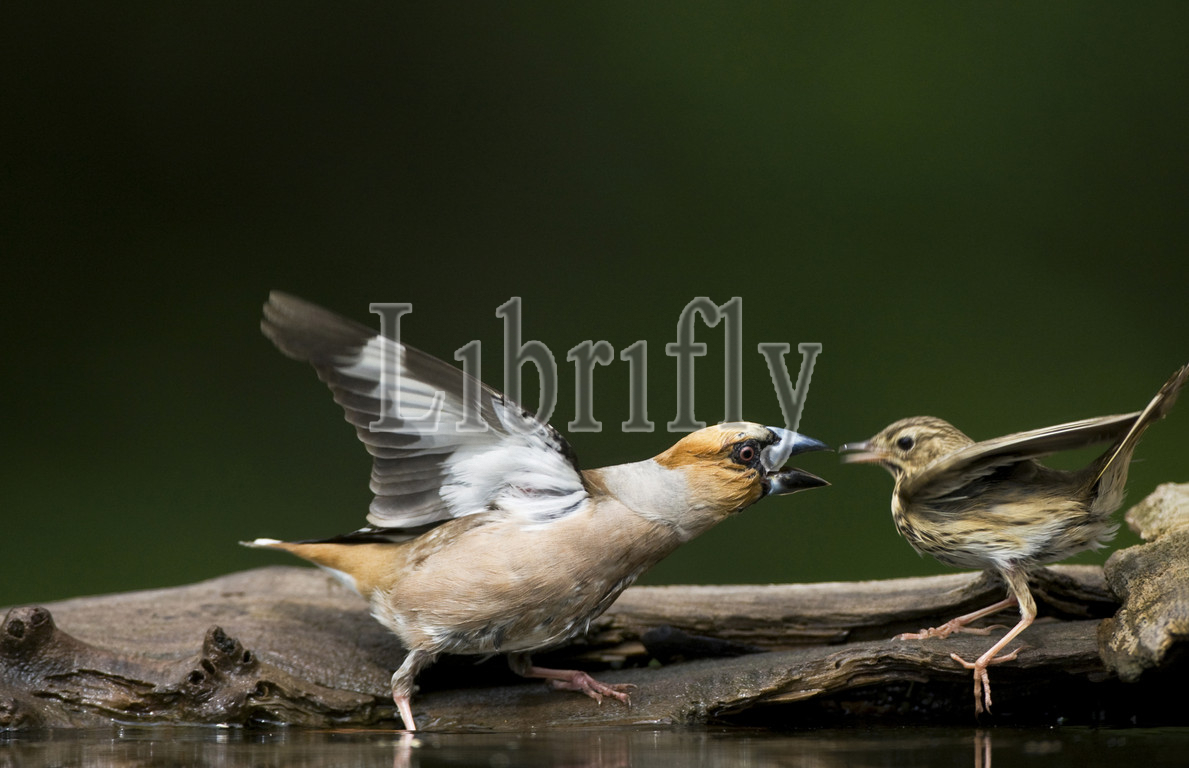 Hawfinch at drinking site, Coccothraustes coccothraustes