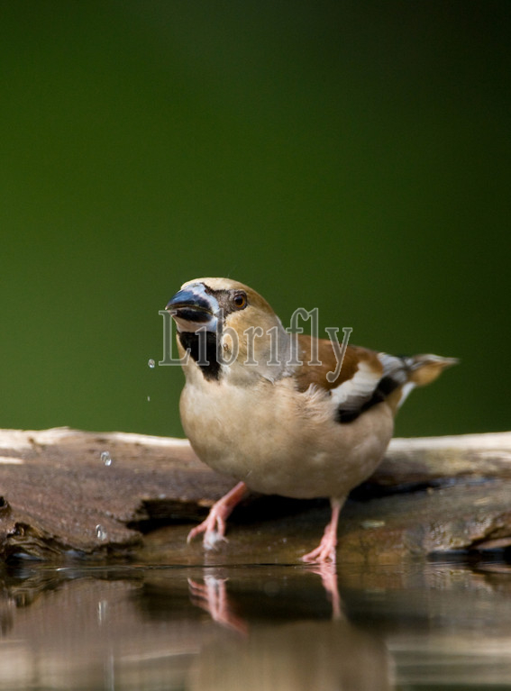 Hawfinch at drinking site, Coccothraustes coccothraustes