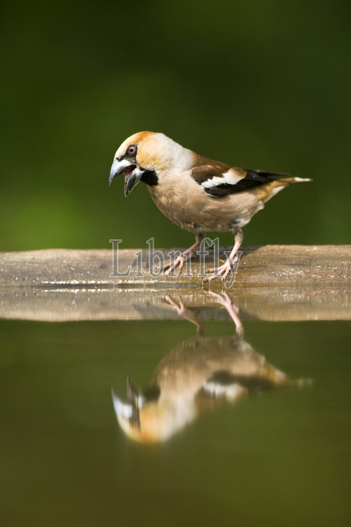 Hawfinch at drinking site, Coccothraustes coccothraustes