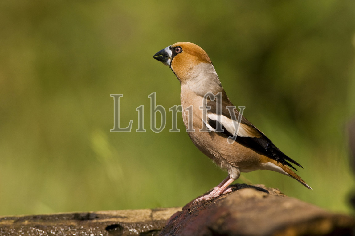 Hawfinch at drinking site, Coccothraustes coccothraustes