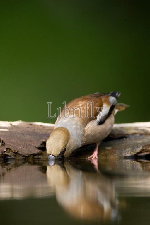 Hawfinch at drinking site, Coccothraustes coccothraustes
